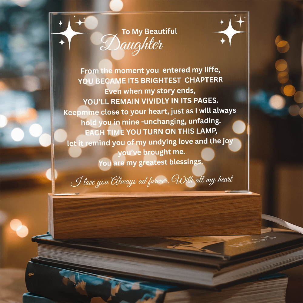 Your plaque will be crafted from premium acrylic with a professionally printed design for a polished look. It comes with a stylish wooden LED base, and you can choose between a USB plug-in option OR a cordless battery-operated option (requires 2 AAA batteries, not included). Both LED bases feature 7 vibrant colors, allowing the user to customize the lighting with various color changes and dynamic cycles.